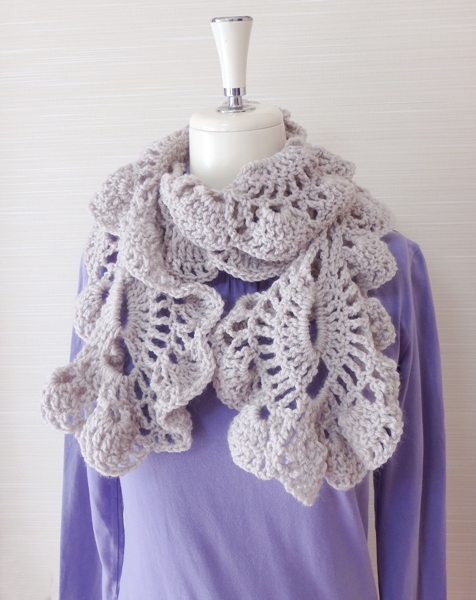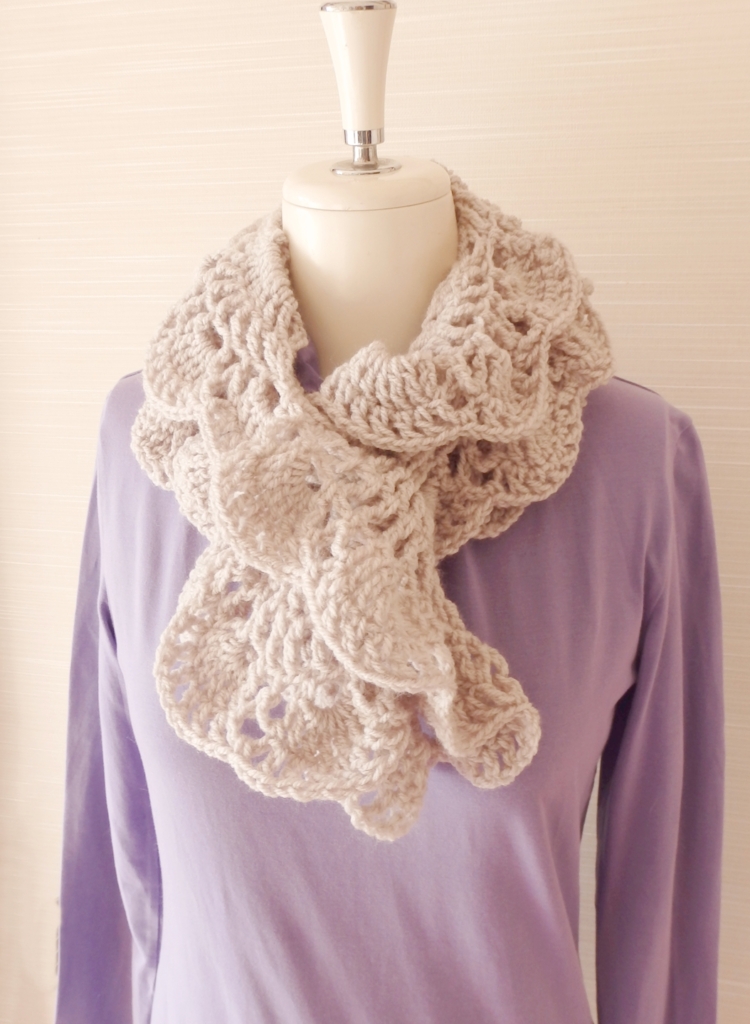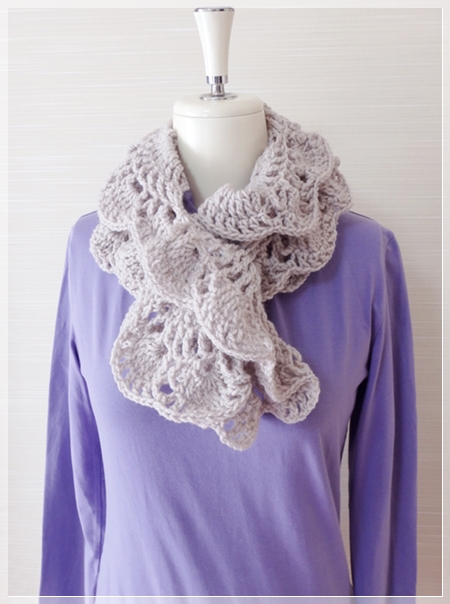 実際に編んでみたら Virus 模様を応用したデザインでしたので、ここではわかりやすいように Virus 模様のフリルマフラーと呼ばせていただきます。😁