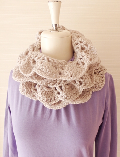 最初の 2 段だけでもミニマフラー程度の大きさにはなるんですが、フリル部分を編むとかなりのボリューム感になります。