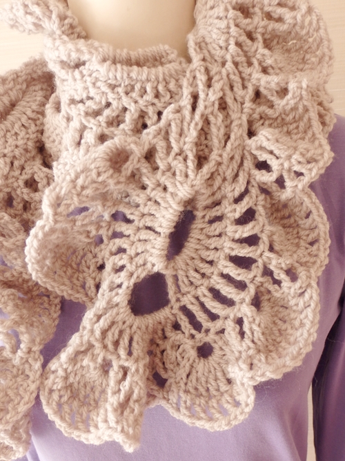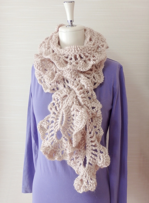 ふわふわな大きめフリルがゴージャスな Virus 模様のマフラーを編みました。🎗️😊