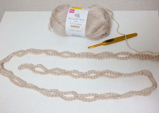 1 作目は試作として、DAISO さんのアクリル毛糸 ベージュを使いました。
